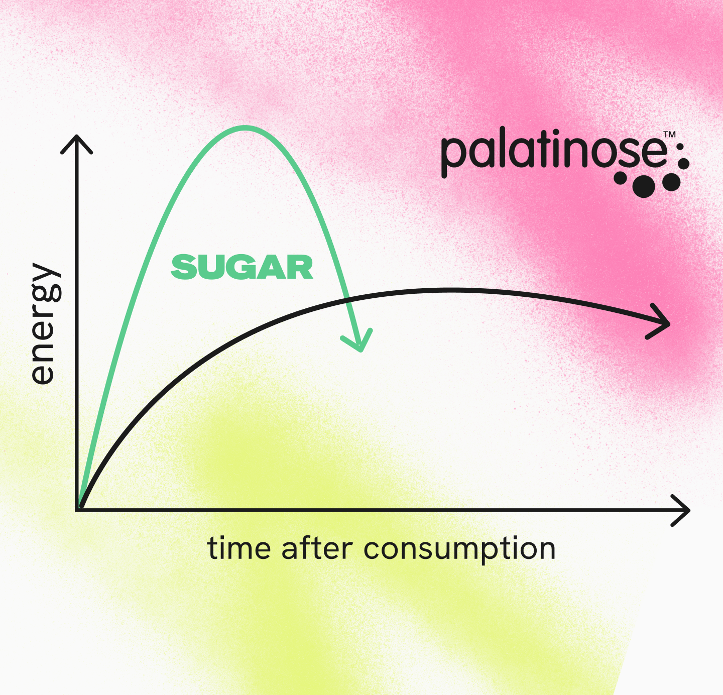 Palatinoseâ„¢ is a naturally sourced carbohydrate that gives any athlete the balanced boost they need without the spike and crash. It stretches the blood glucose curve to spare your insulin levels and prolong energy supply.
